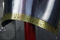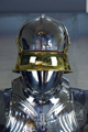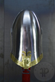 Przy³bica z zas³on± typu psi pysk wzorowana na he³mie CH16 z Churburga. He³m wykonany z wysokiej jako¶ci stali niskowêglowej oraz ulepszony cieplnie do 30 HRC. Wyposa¿ony dodatkowo w mocowanie na pióropusz. Zas³ona oraz mocowanie pióropusza zosta³y pokryte 24 karatowym z³otem.